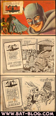 Here's some really cool vintage Batman items you don't see alot of here in the USA. There are some EL TONY Magazines with beautiful color photo covers of Adam West, Burt Ward, Frank Gorshin, & other fine actors from the classic 1960's TV Series. Then, in the next photo, is a really RARE comic book in a strange horizontal-format. It's dated ©1957 & I love the wacky picture of Batman as a "real person" wearing a mask, a very nice graphic! Be sure to click on the photos up above so you can see the larger details, they're pretty cool. Also, Be sure to check the BAT-BLOG ARCHIVES for many more wonderful Batman Toys & Collector's Items from our friends in Argentina!